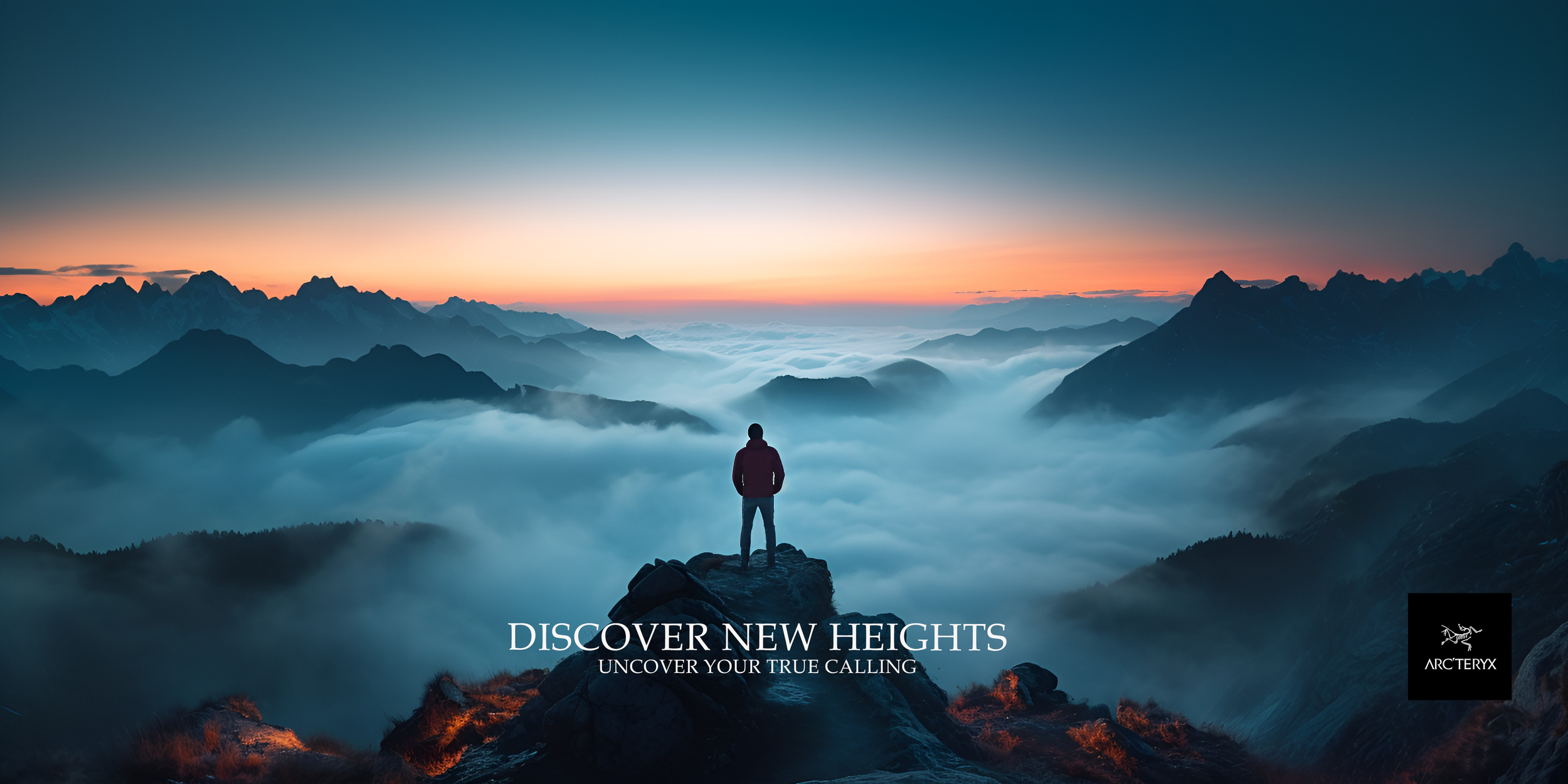 Advertise Arc'teryx as a way to promote the importance of outdoor spaces for relaxation and rejuvenation. The Wild is calling (Arc'teryx is Calling).
